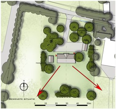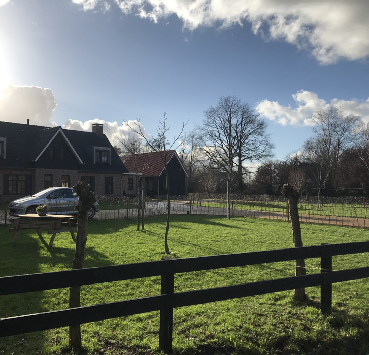 In het buitengebied van Bennekom werd een agrarisch bedrijf beëindigd. De sloop van de bebouwing gaf mogelijkheden om het perceel opnieuw in te richten. Het perceel moest echter wel landschappelijk worden ingepast. Het perceel is ingericht als een mooi gezamenlijk erf. Bestaande waardevolle elementen, zoals een historische houtwal, bleven behouden.