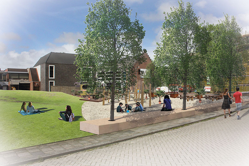 Het Stadslab Veenendaal heeft begin 2015 een ontwerp gemaakt voor een pop-up strand op een braakliggend stuk terrein in Veenendaal. Buro Binnenveld heeft hierbij een impressie gemaakt. Zomer 2015 werd het strand in gebruik genomen.